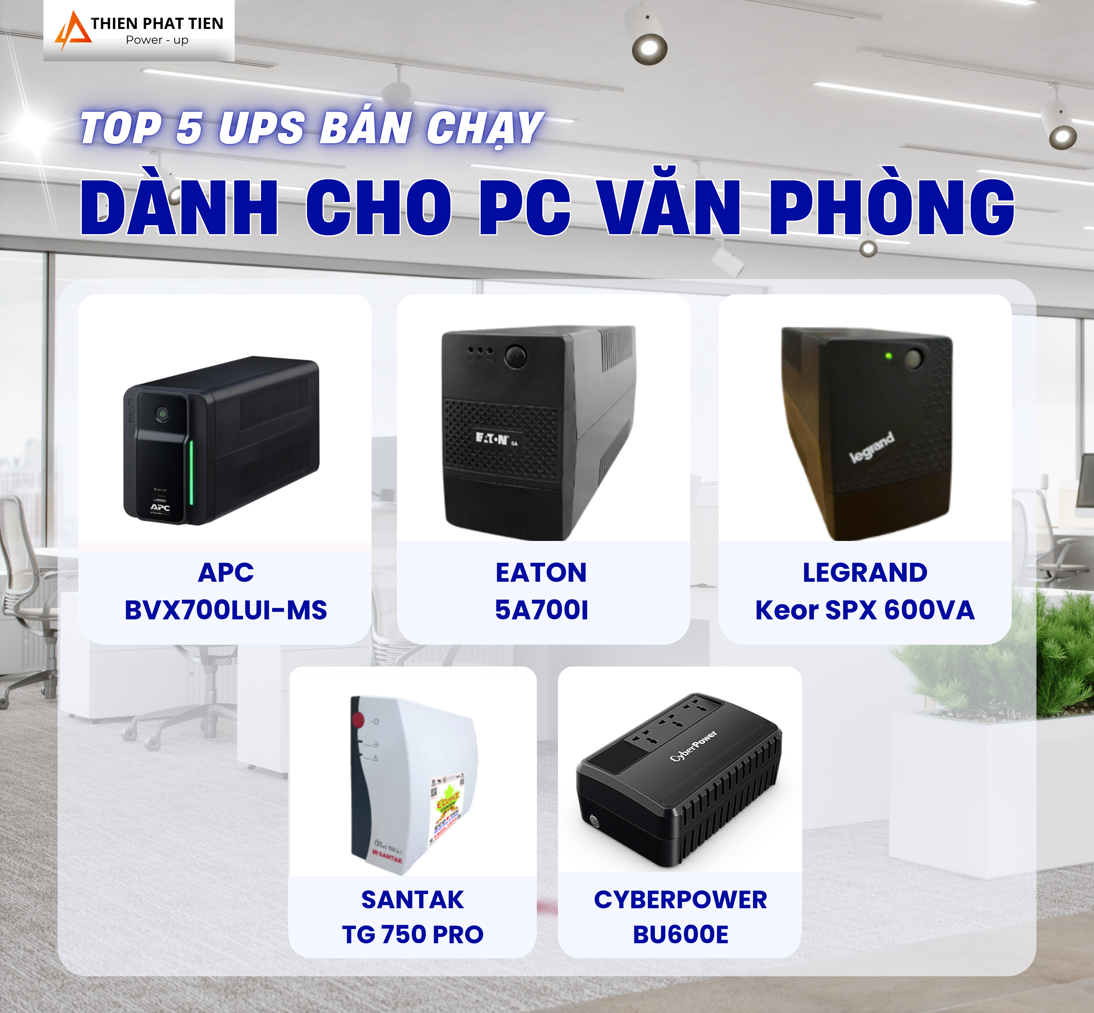Dựa trên nhu cầu thực tế của khách hàng doanh nghiệp và cá nhân, Thiên Phát Tiến giới thiệu TOP 5 UPS đáng mua nhất cho PC văn phòng, đáp ứng tốt về hiệu năng, độ bền và giá thành.